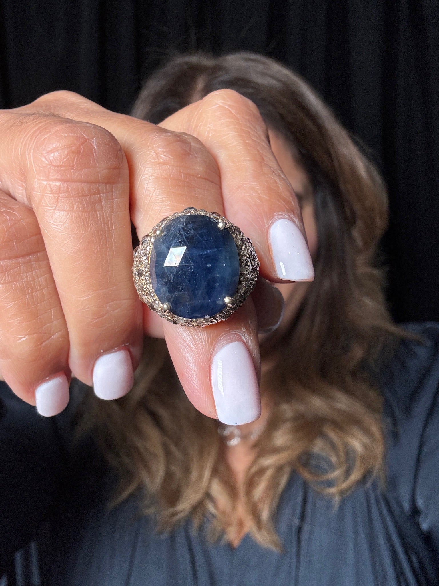 Sapphire and Colored Diamond Gold-Plated Silver Ring