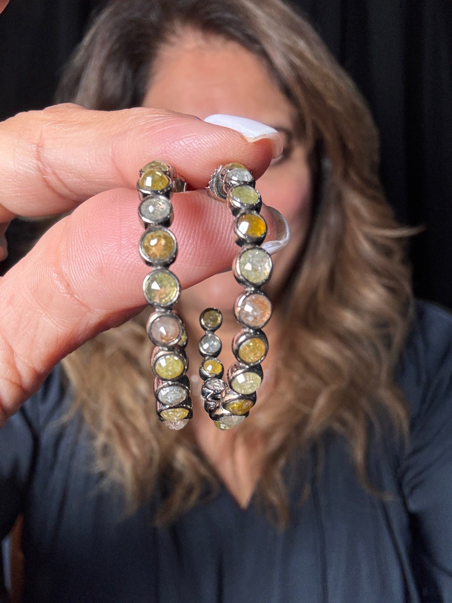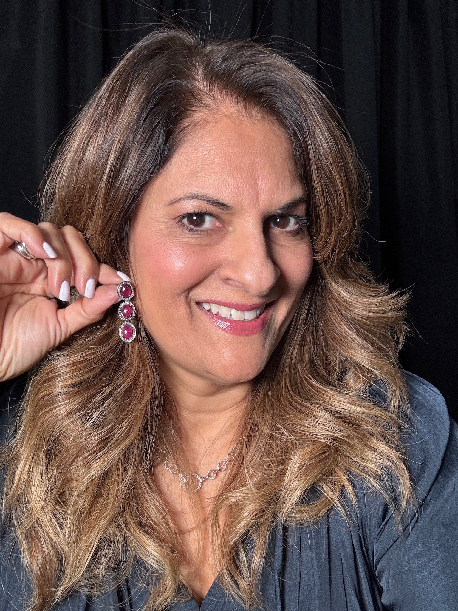 I work primarily in sterling silver (.925) and 14k and 18k gold (yellow and white) with natural precious and semi-precious gemstones including sapphires, emeralds, rubies, tourmalines, opals, aquamarines, garnets, spinels, tanzanites, and natural diamonds. When I use pearls, I select high-quality natural freshwater and Tahitian pearls. All pieces use genuine, untreated or disclosed-treatment gemstones sourced directly from gem shows. Each product page lists exact materials, gemstone origins, and metal finish.