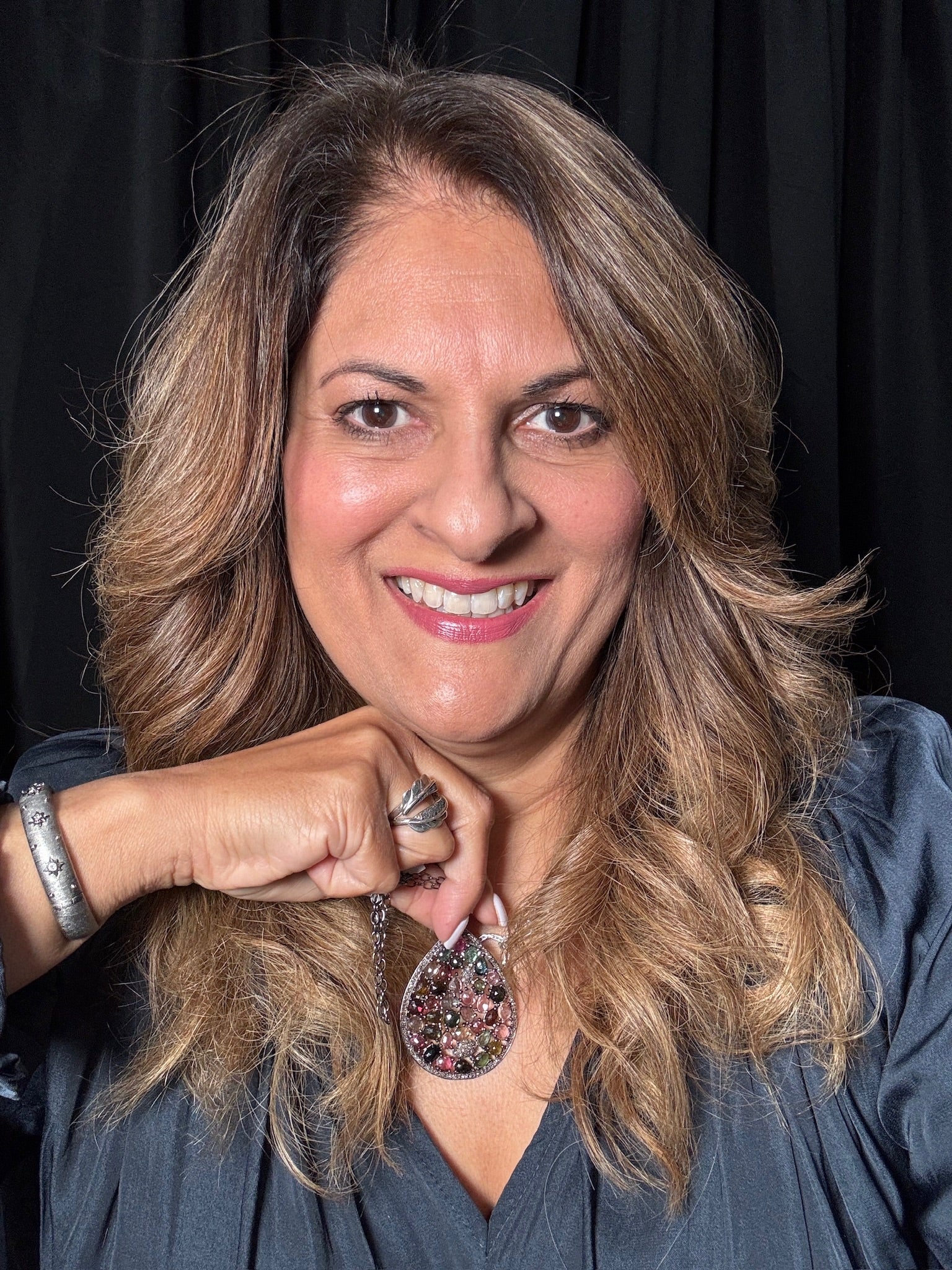 I work primarily in sterling silver (.925) and 14k and 18k gold (yellow and white) with natural precious and semi-precious gemstones including sapphires, emeralds, rubies, tourmalines, opals, aquamarines, garnets, spinels, tanzanites, and natural diamonds. When I use pearls, I select high-quality natural freshwater and Tahitian pearls. All pieces use genuine, untreated or disclosed-treatment gemstones sourced directly from gem shows. Each product page lists exact materials, gemstone origins, and metal finish.