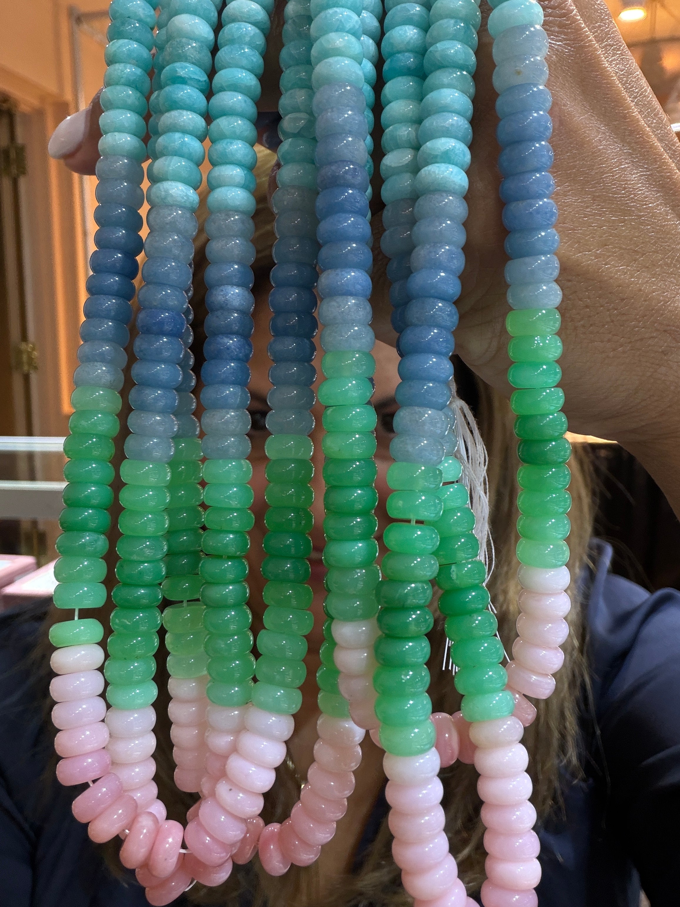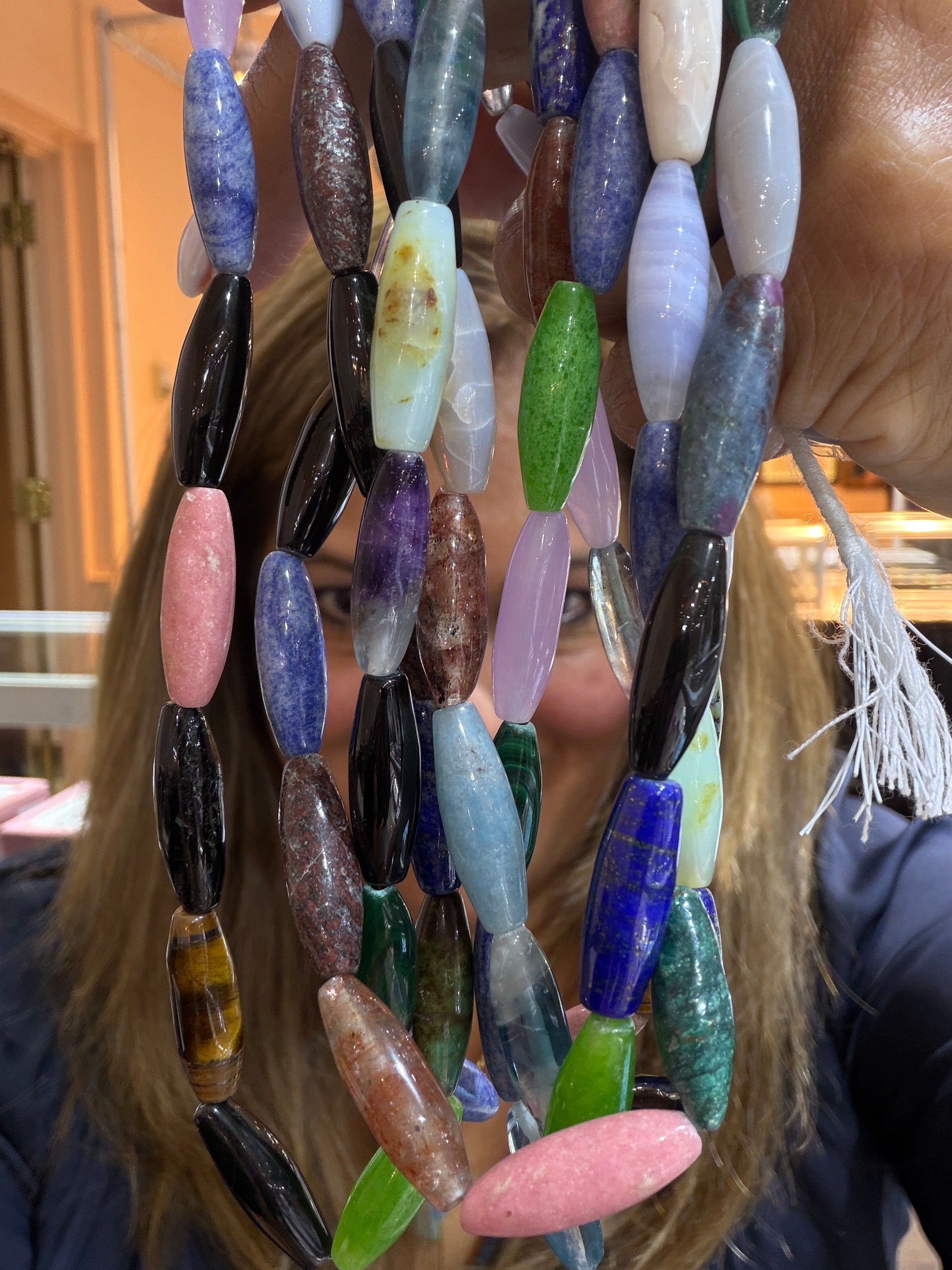 Many designs—especially my signature gemstone strand beaded necklaces and statement gemstone and stone pendants—are one-of-a-kind (OOAK) due to unique stone combinations sourced directly from international gem shows and from artisan stone cutters. Other styles like my Signature Combos and Jamboree Necklaces are produced in limited small batches. Since I use natural gemstones, each piece has unique color variations and character even within the same style. Once sold, most designs cannot be exactly replicated.