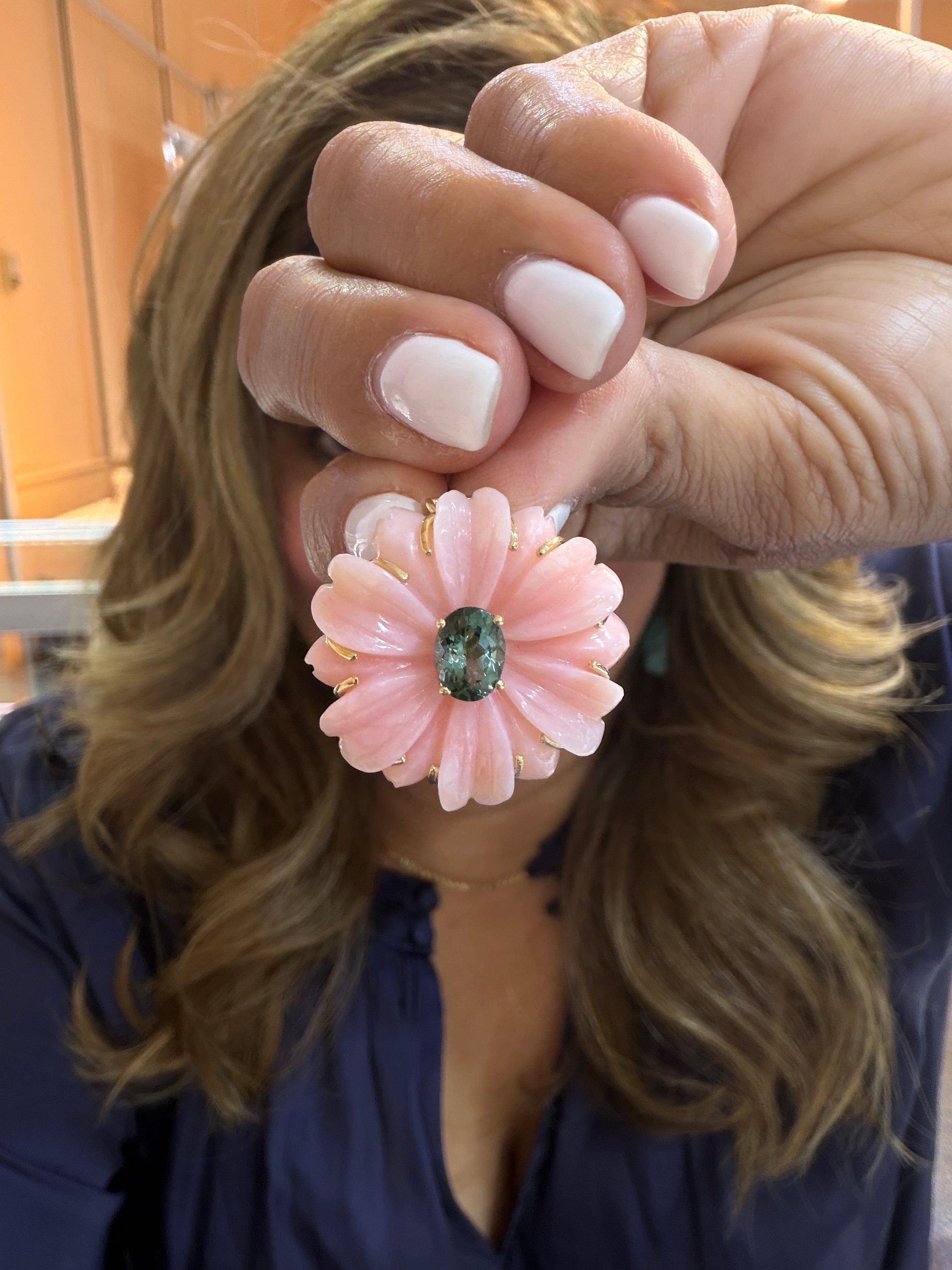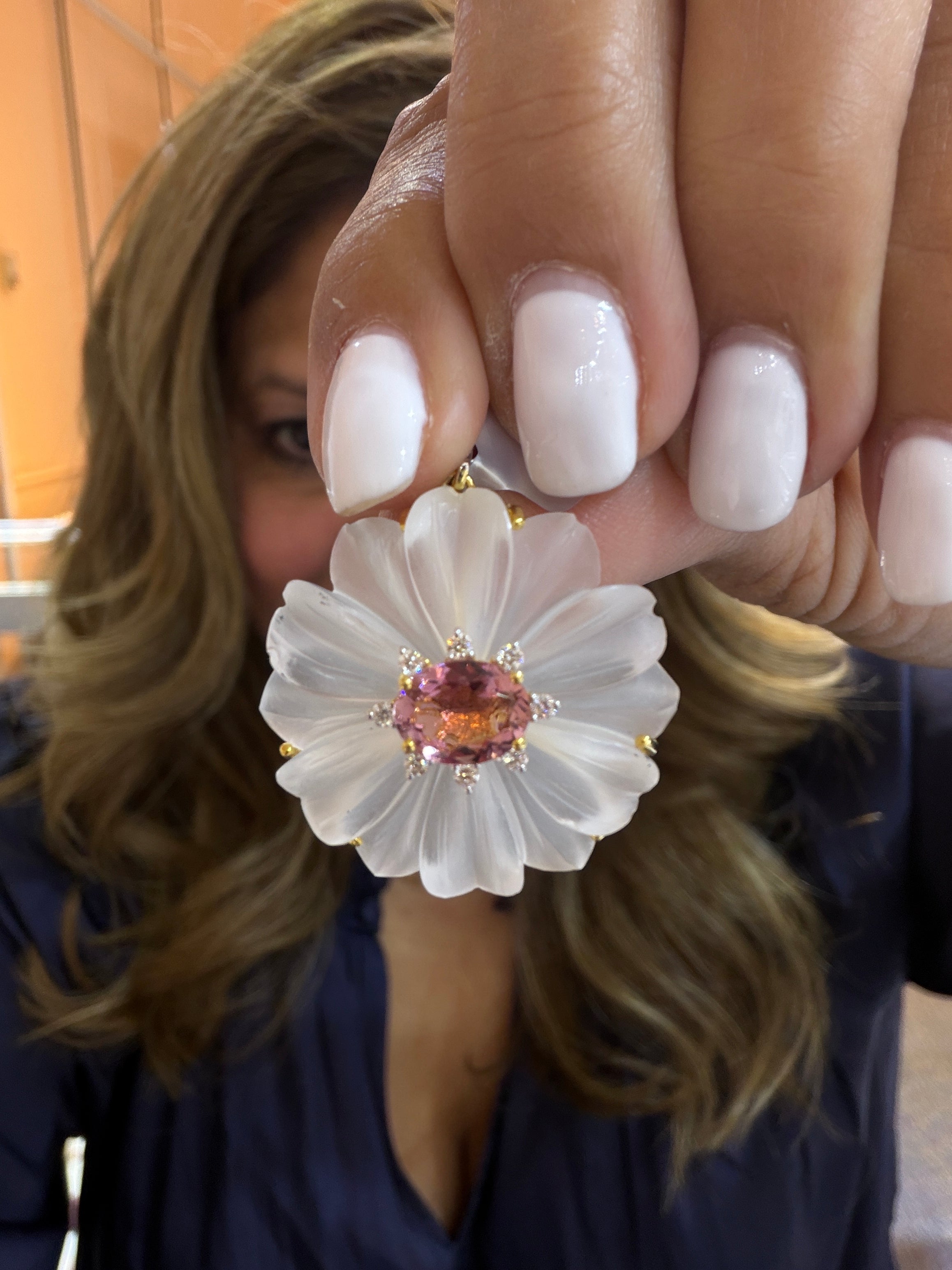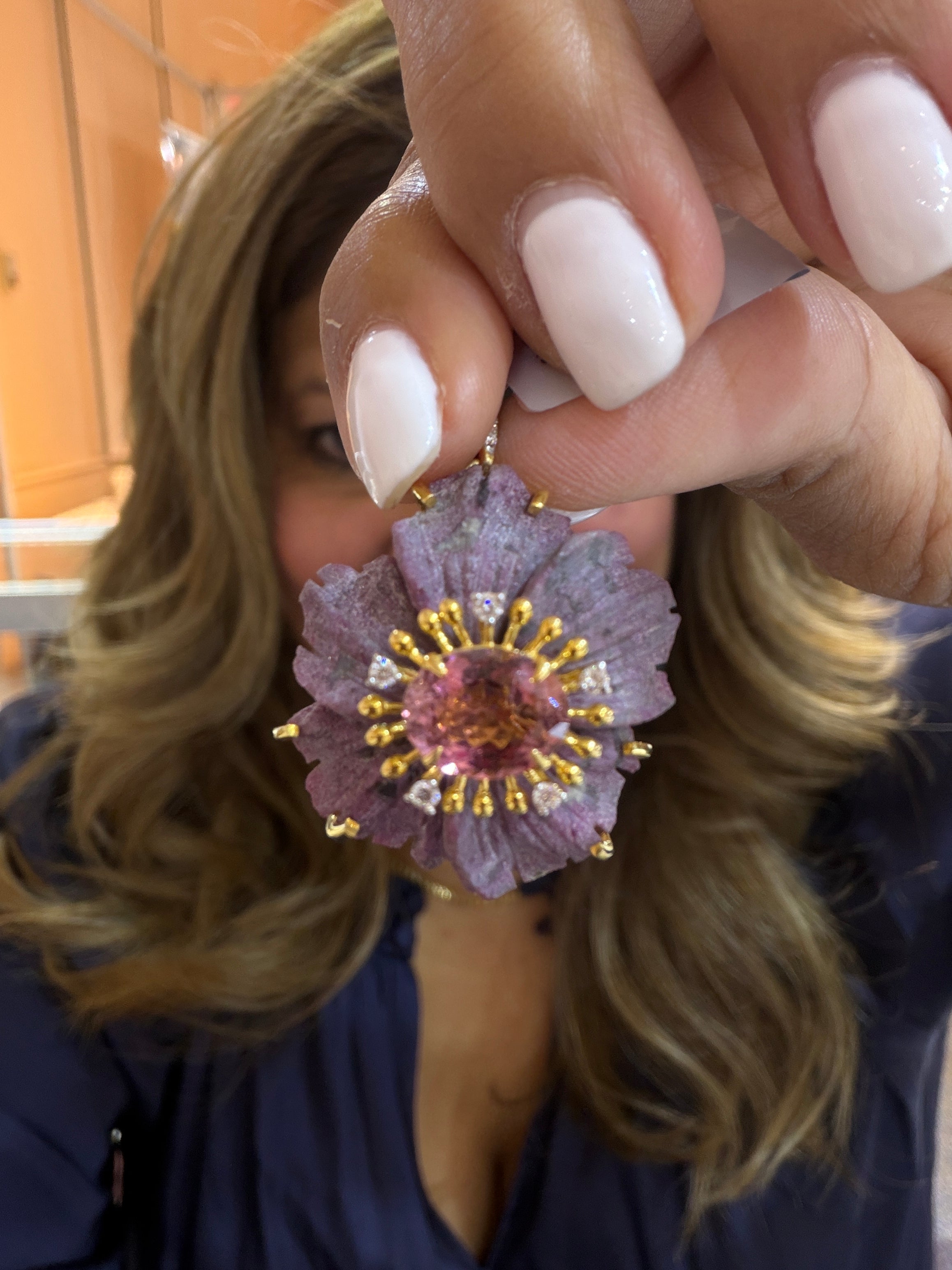 I work primarily in sterling silver (.925) and 14k and 18k gold (yellow and white) with natural precious and semi-precious gemstones including sapphires, emeralds, rubies, tourmalines, opals, aquamarines, garnets, spinels, tanzanites, and natural diamonds. When I use pearls, I select high-quality natural freshwater and Tahitian pearls. All pieces use genuine, untreated or disclosed-treatment gemstones sourced directly from gem shows. Each product page lists exact materials, gemstone origins, and metal finish.