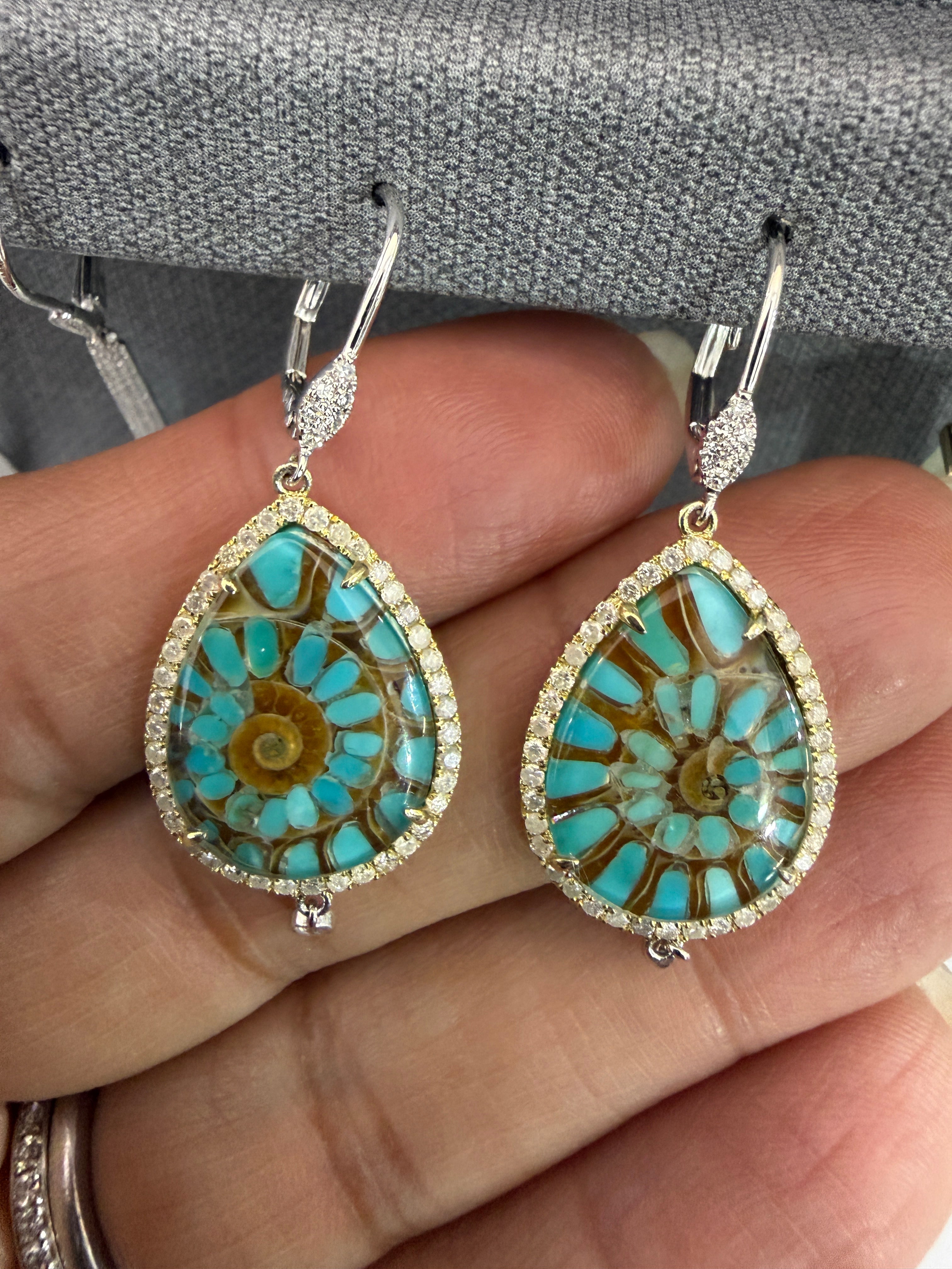 14k White Gold Earring With Ammonite