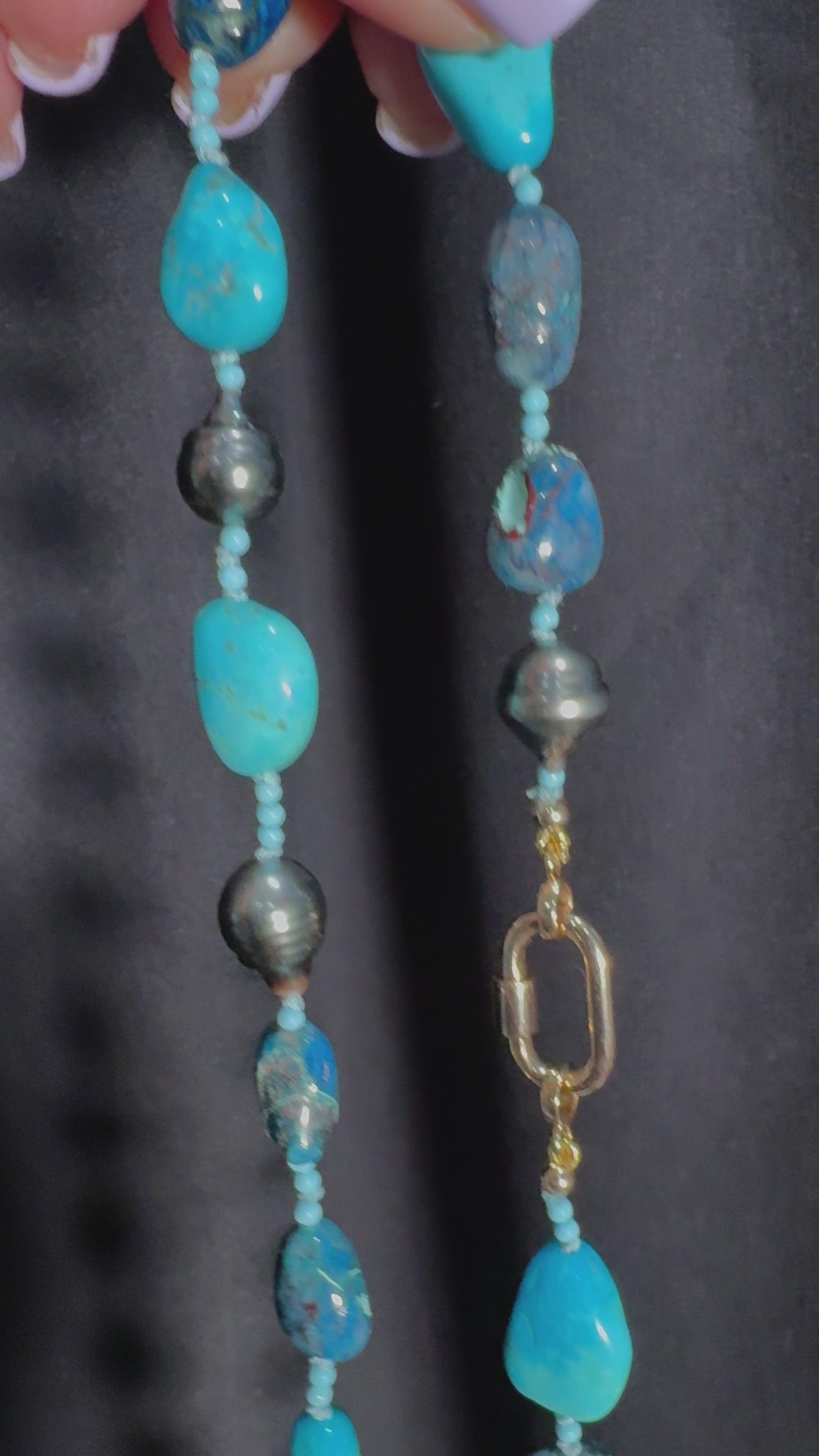 18” Tahitian Pearl & Blue Gemstone Necklace | Luxe Layering with a Coastal Vibe | Feel Bold & Confident