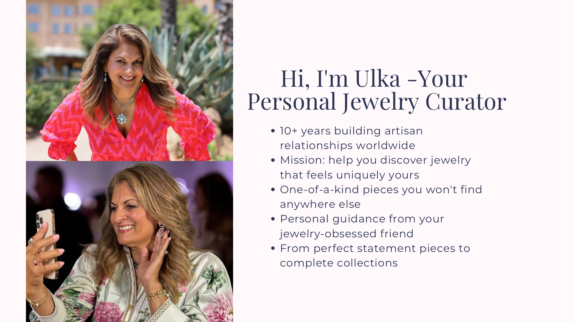 Personal Curation: Direct access to personalized styling advice and collection-building expertise. Get recommendations tailored to your unique taste, wardrobe, and lifestyle — imagine having your own personal jewelry curator who understands your style evolution.