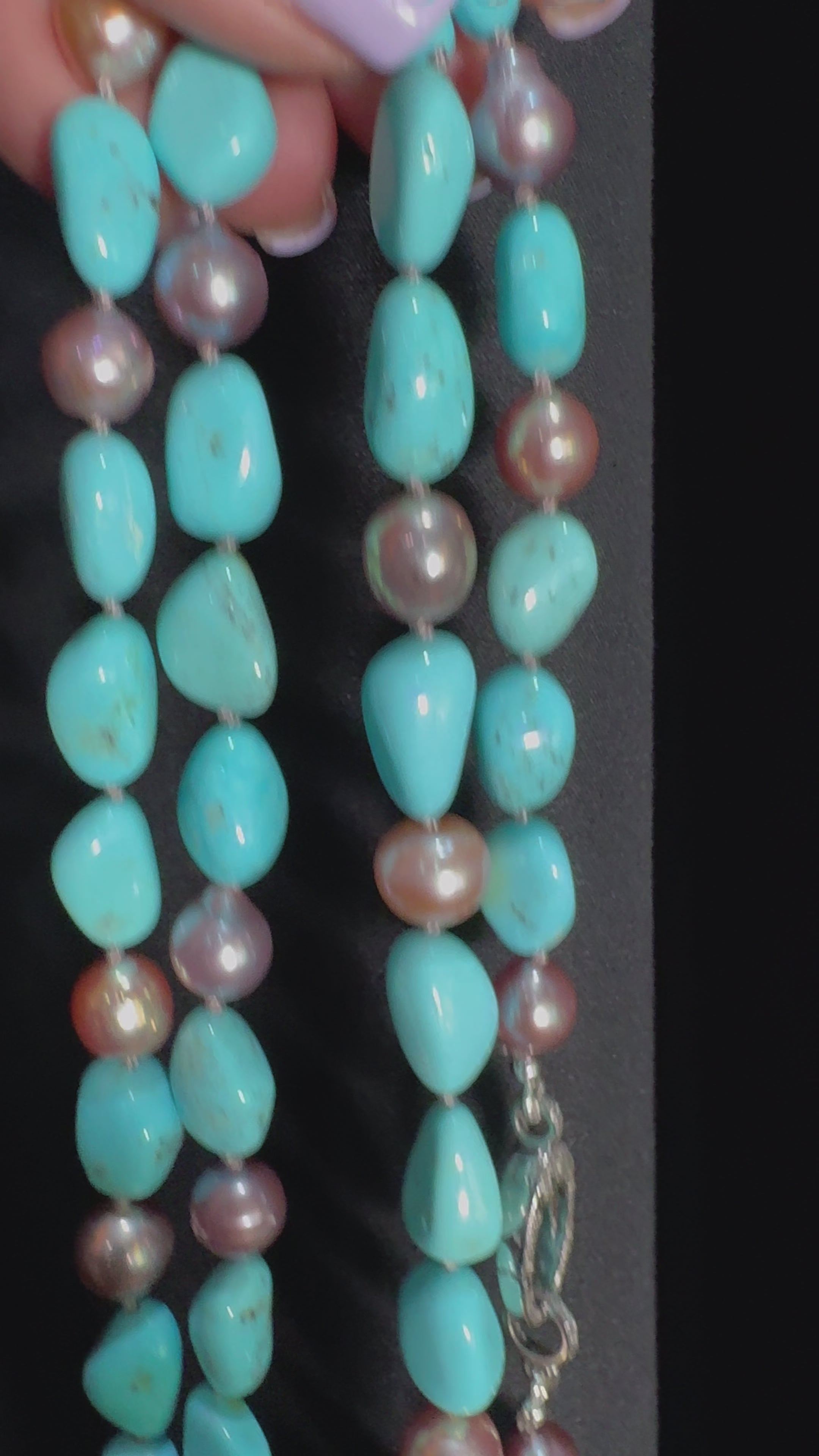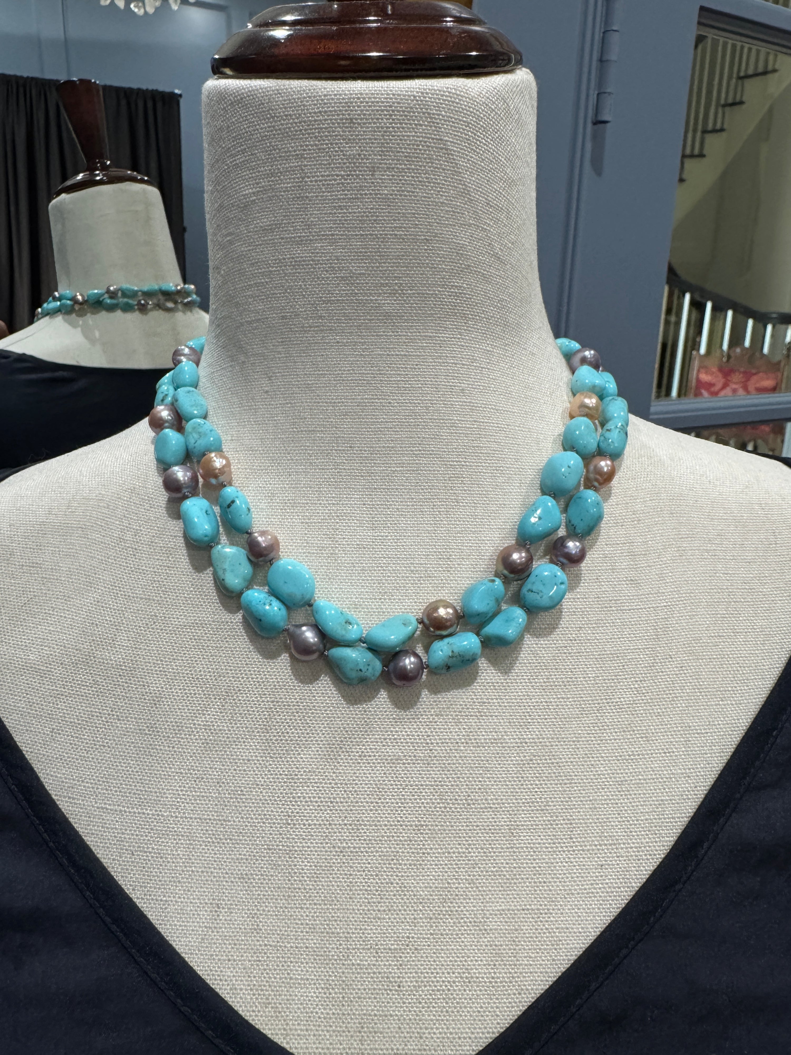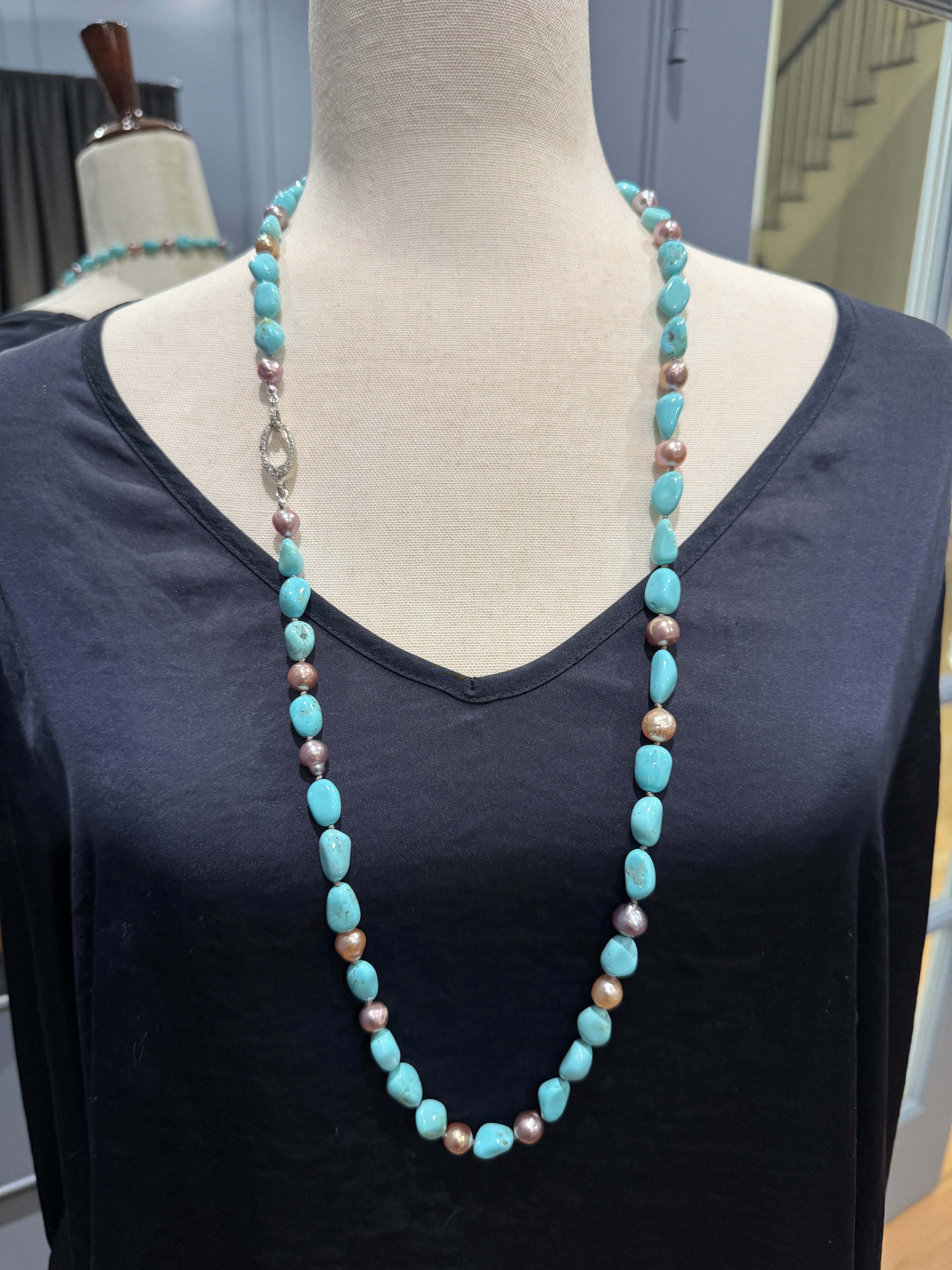 35” Sonoran Turquoise & Edison Pearl Necklace | Vibrant Elegance | Feel Confident