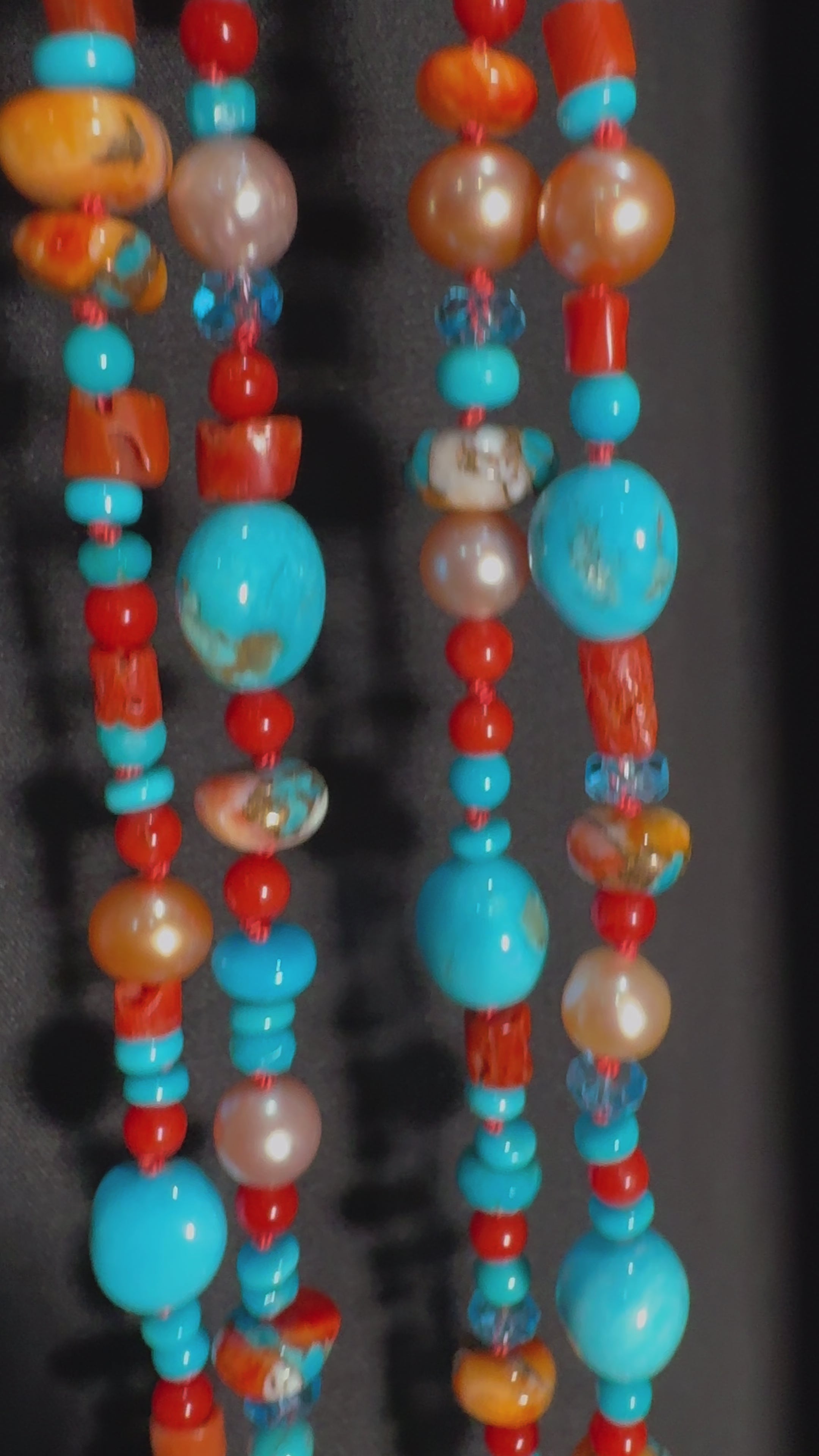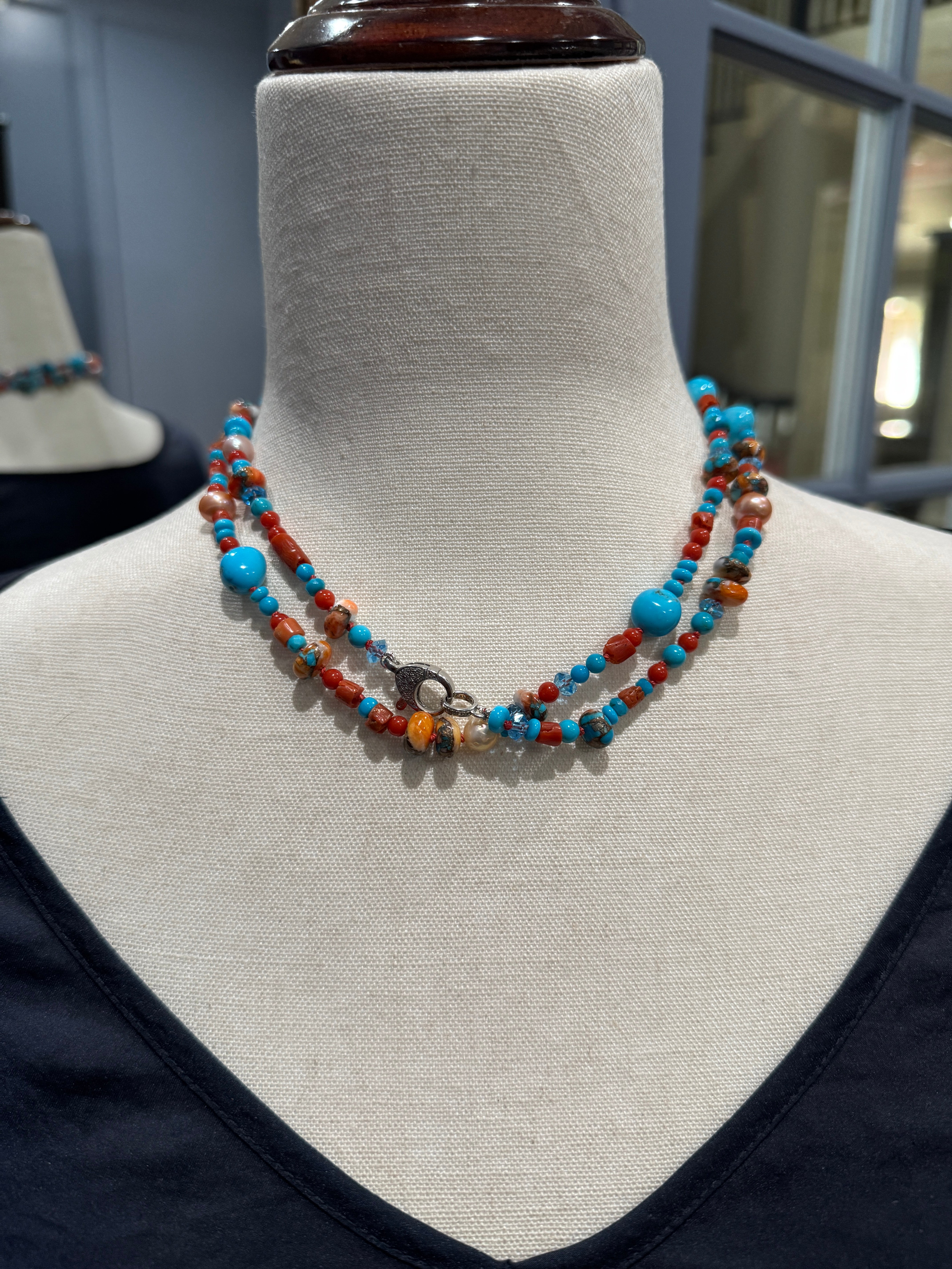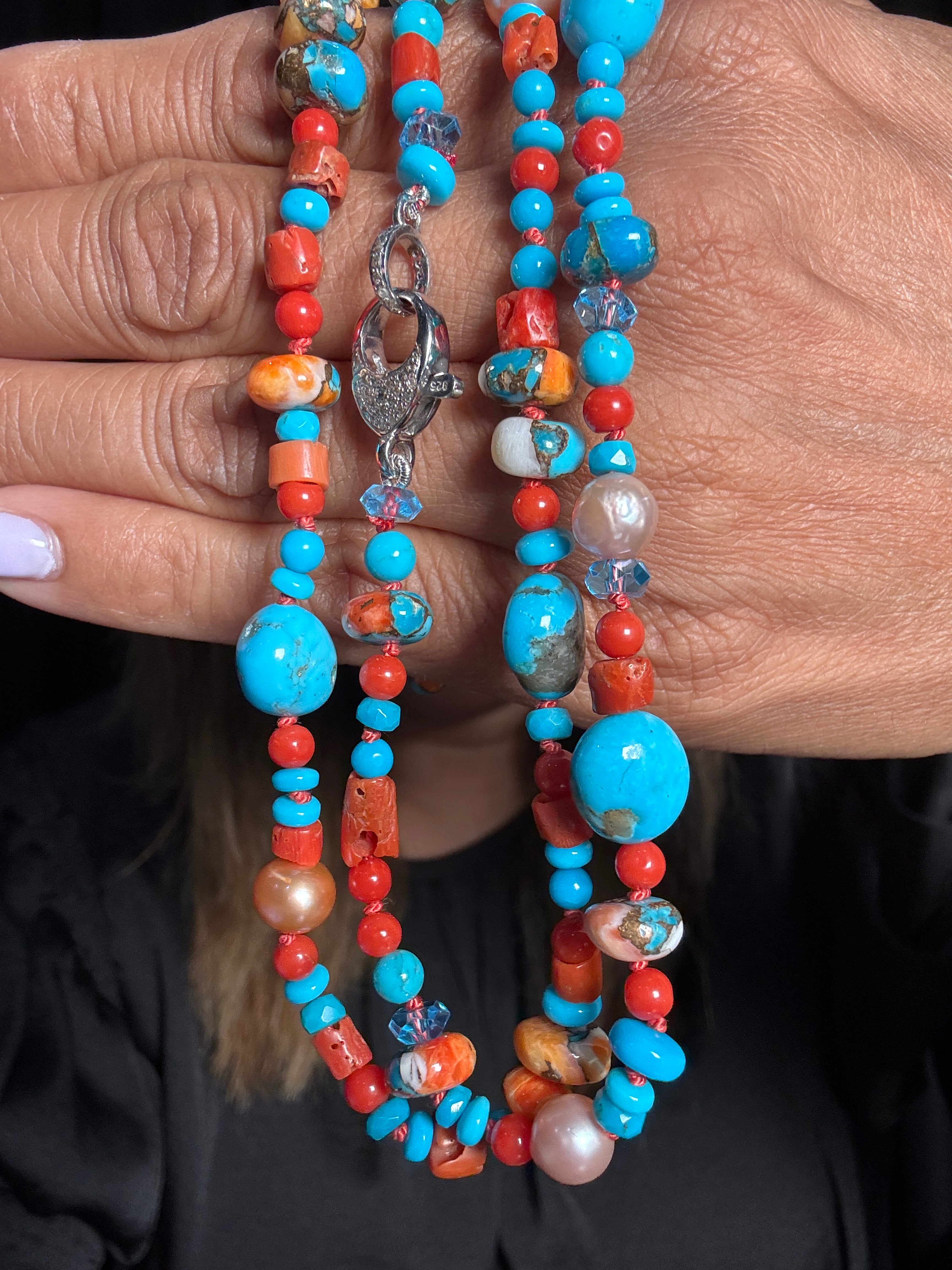 35" Turquoise, Spiny Oyster & Coral Necklace | Bold Southwest Layers | Feel Artistic and Alive