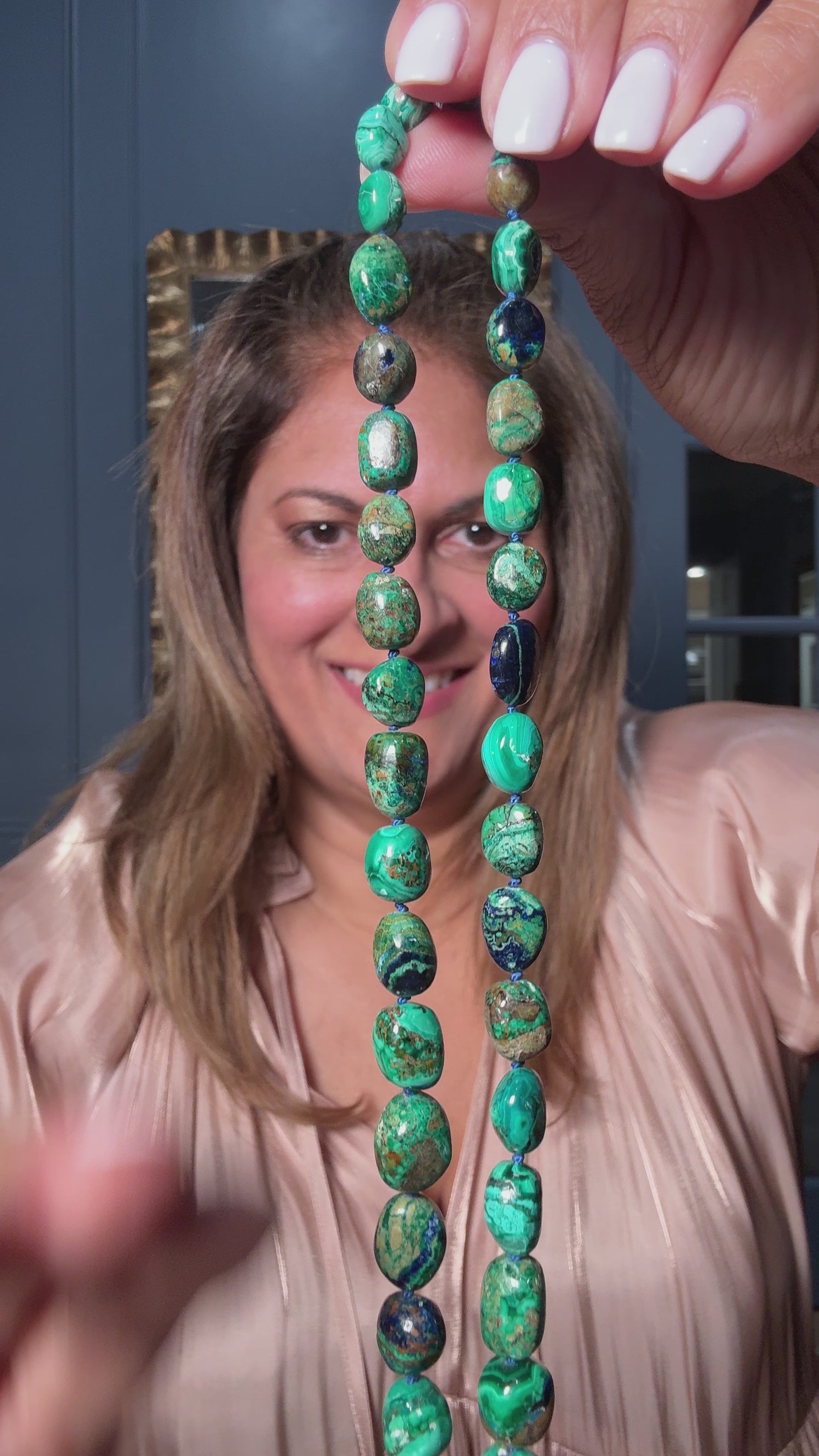 18” Azurite-Malachite Necklace with Diamond Clasp & Azurite Pendant | Collector Piece | Jewelry That Tells a Story in Bold Green & Blue