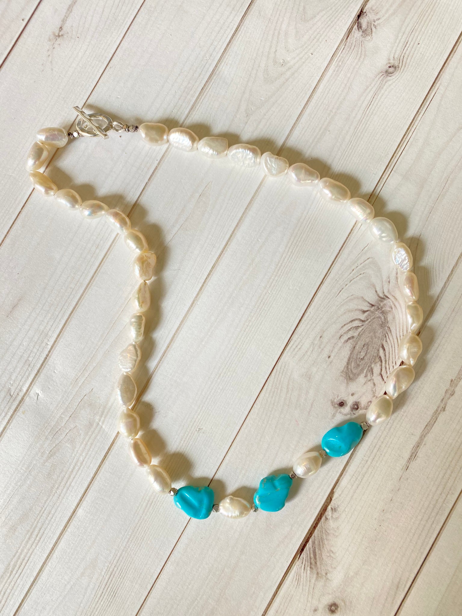 Pearl and Sleeping Beauty Turquoise Necklace