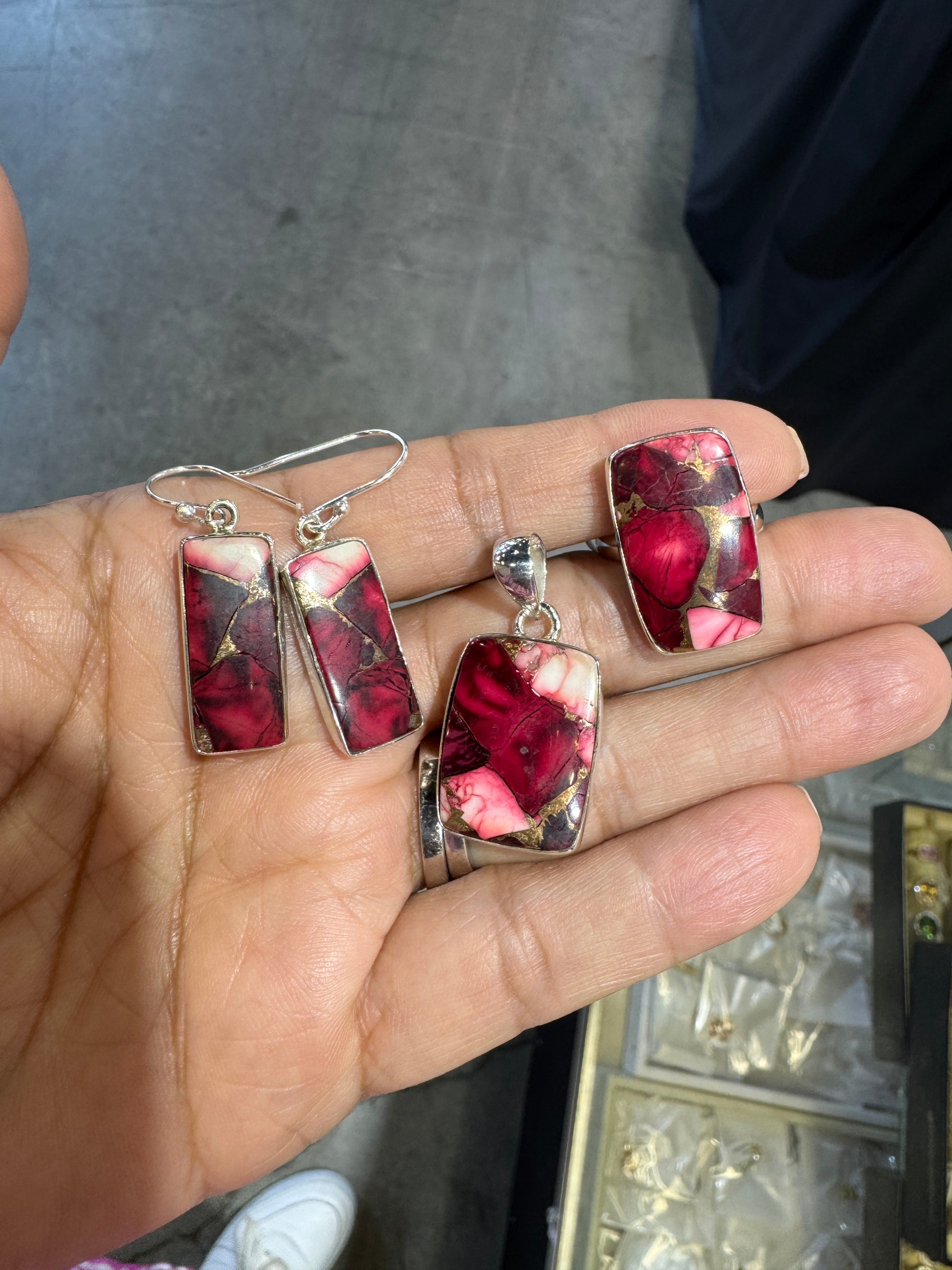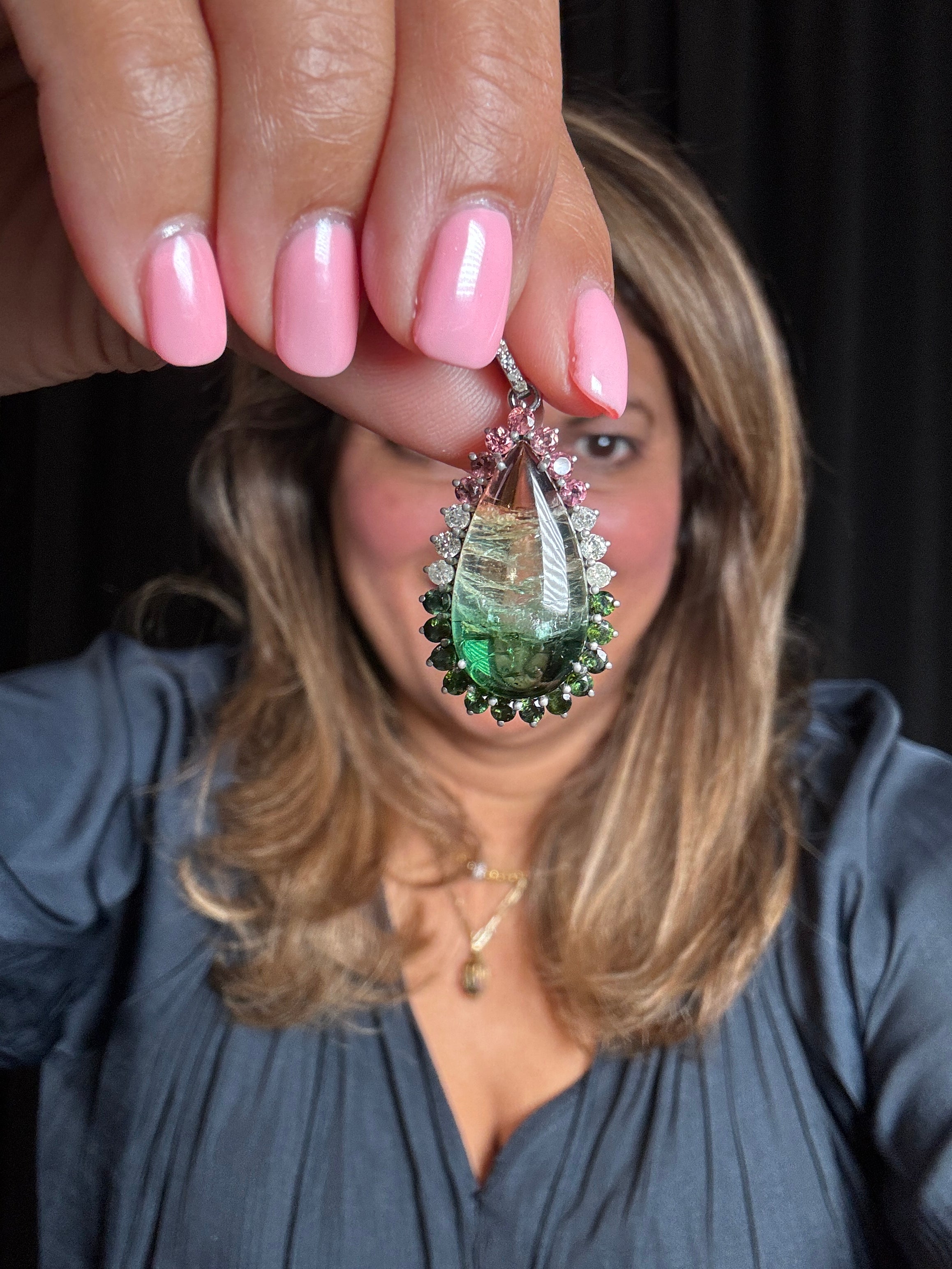 Cherry Dahlia Silver PendantBio Tourmaline Pendant