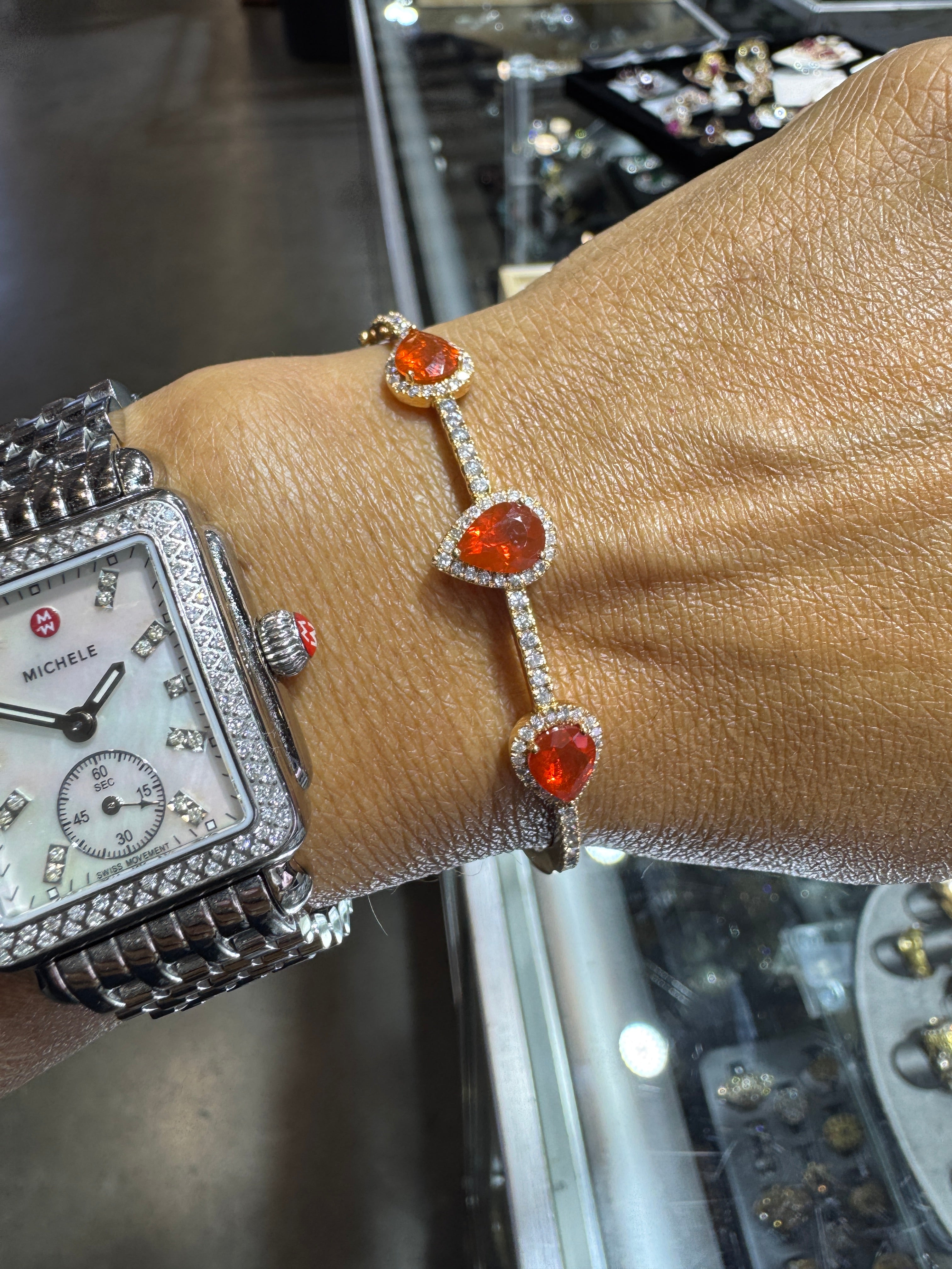 Fire Opal 14k Gold BraceletPietersite Diamond Pendant