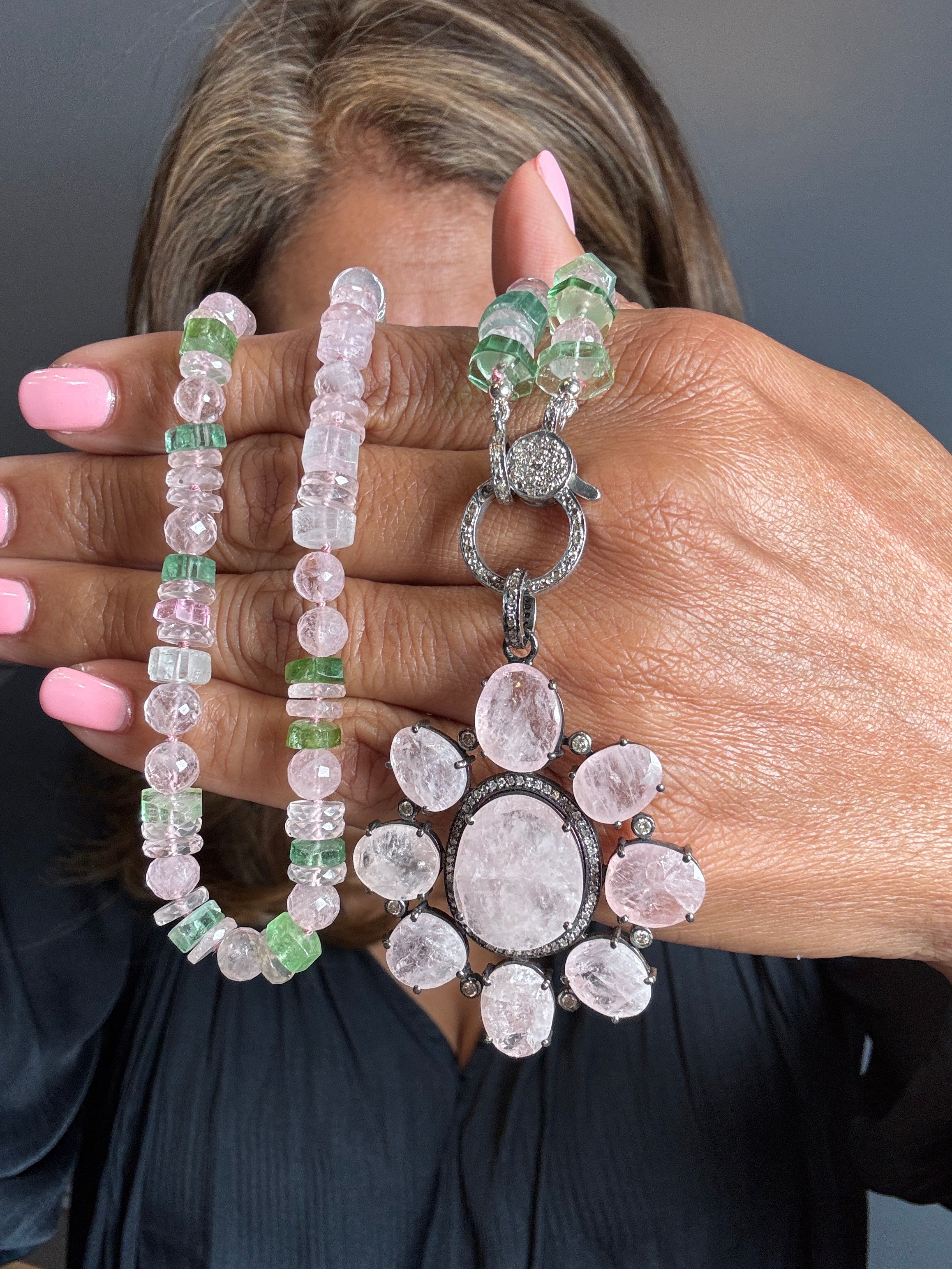Morganite / Afghan Tourmaline Necklace - 22” is $1200 / confirming length 36” will be $1800 - tbd - showing as 0 for now