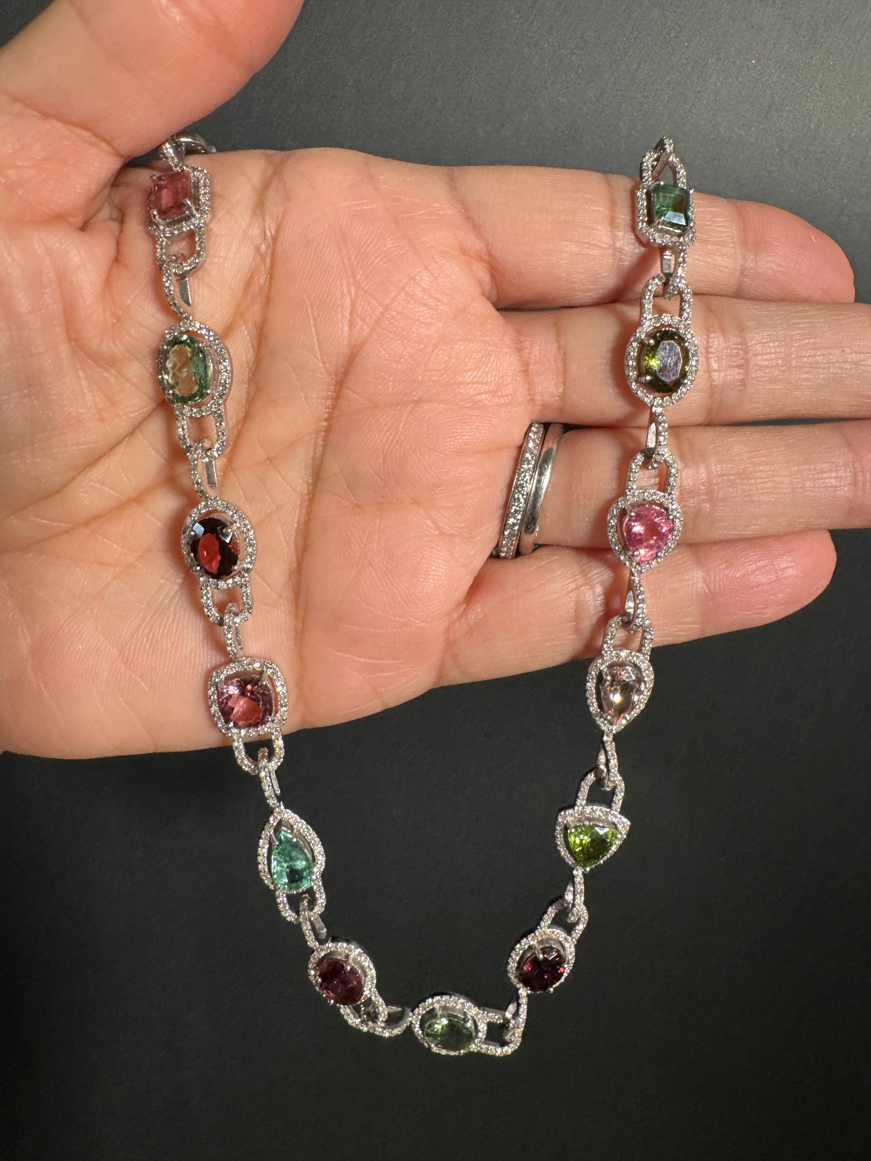 Tourmaline Silver Diamond Necklace - 6-18” adjustable