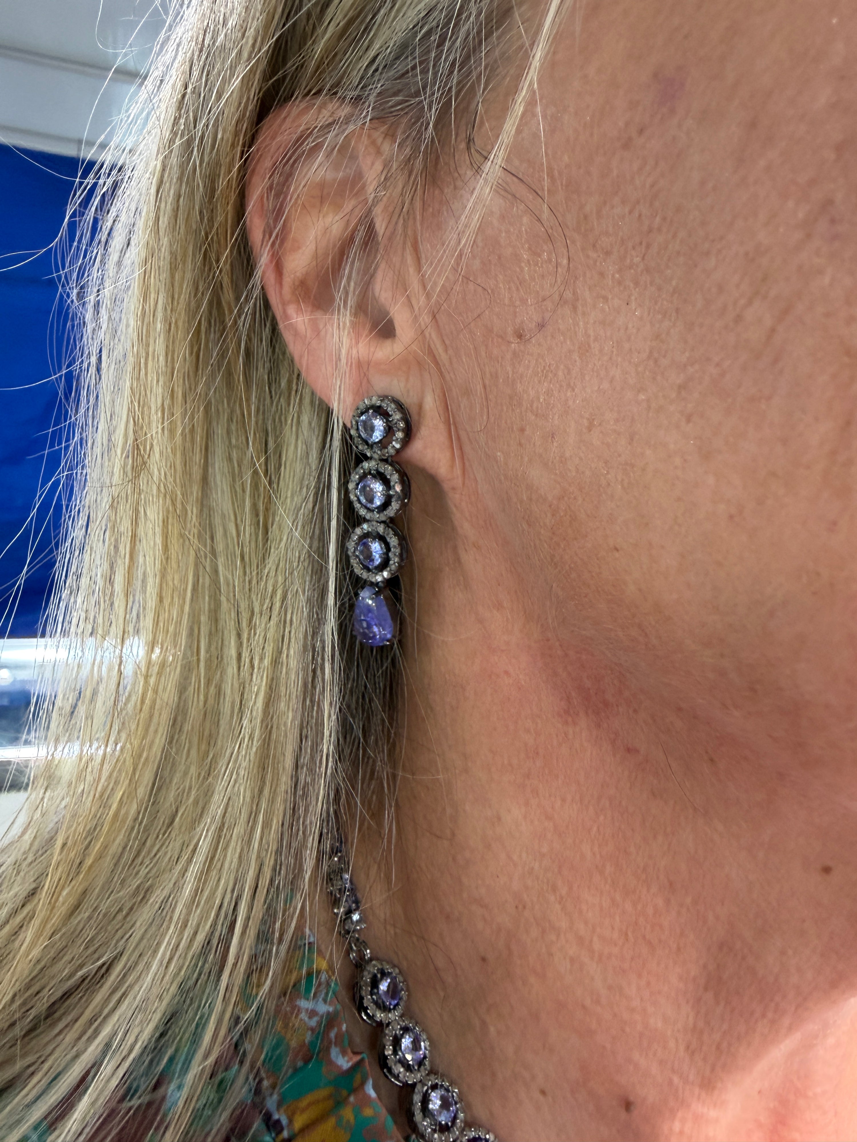 Sterling Silver Necklace and Earring Set With Tanzanite and Diamonds